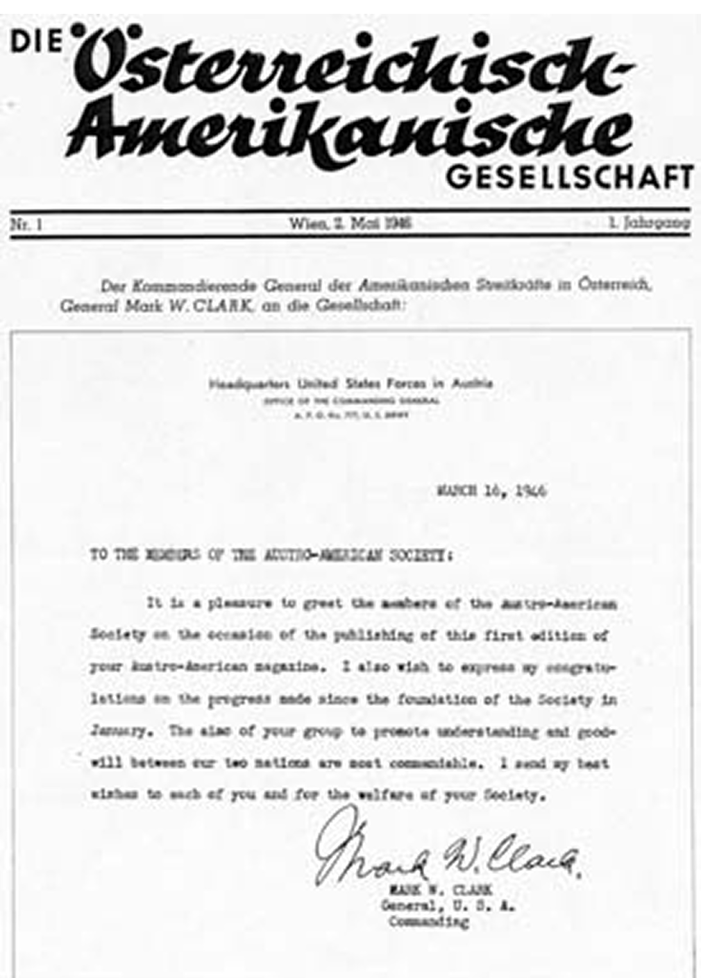 Im Mai 1946 kam die erste Klubzeitung heraus. Auf der Titelseite stand folgende Grußbotschaft von General Mark W. Clark, U.S.A.: